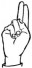 На ћирилици написано ПЕРИША ЂЕНАДИЋ састоји се из 13 слова [?]. Исписано ћириличном једноручном азбуком за глувонеме: